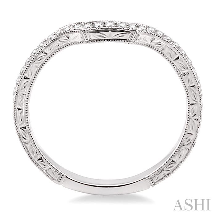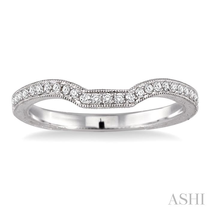Accent your beloved style with the glow of this Diamond Wedding Band. It glistens with 26 dazzling round cut diamonds elegantly set in pave setting and crafted in luminous 14 karat white gold. Total diamond weight is 1/6 ctw.