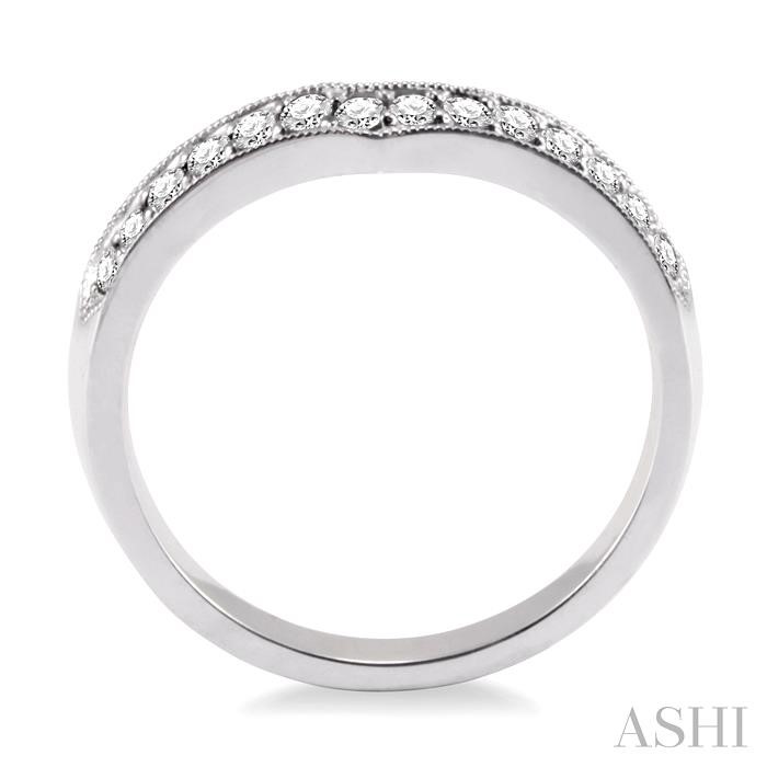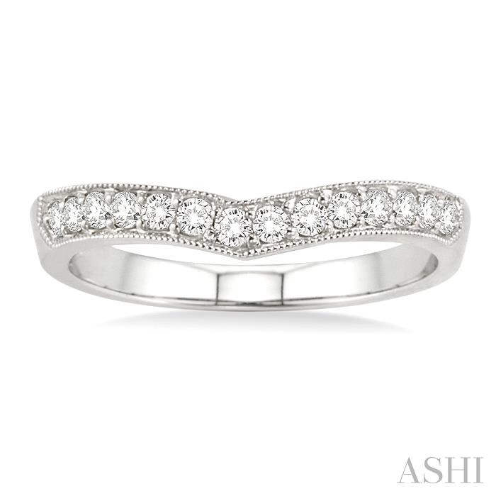 Marvelous Diamond Matching Wedding Band is a distinct gift to express your love. It is crafted in gleaming 14 karat white gold. The charming band features the sparkle of 14 glittering round cut diamonds complemented with pave setting. Total diamond weighs 1/3 ctw.