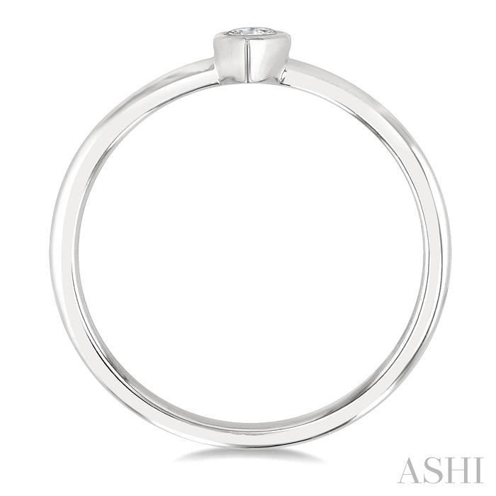 Having a simplistic look does not mean that the piece of jewelry will not find notice. It can most often be the attracting feature in the accessory, just as it is in this Petite diamond fashion ring. Simple but elegant, this ring is a radiant beauty. It features at its core, a pear-shaped center mount adorned with a bezel set pear cut diamond, adding a touch of sparkle and elegance to the piece. Complementing the brilliance of the diamond is a plain gold shank. The Petite diamond fashion ring is carved in a rhodium finish 10 karat white gold. Total diamond weight is 1/6 ctw.