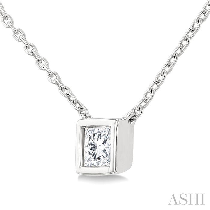 Princess Shape Bezel Set Petite Diamond Fashion Pendant