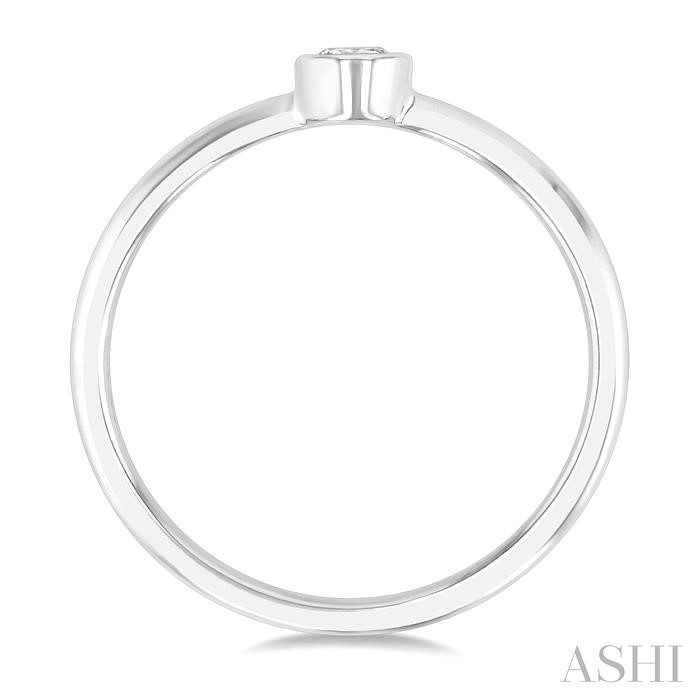 Simplicity is of essence in this charming diamond fashion ring, as it lets the diamond shine through with ultimate brilliance. The ring comes from the trending Petite Collection, and features a round-shaped mount adorned with a bezel set round cut diamond, which adds a touch of sparkle and sophistication to the piece. A plain gold shank allows the round cut diamond to take center stage. Crafted in a rhodium finish 10 karat white gold, the Petite diamond fashion ring impresses with its radiant beauty. Total diamond weight is 1/6 ctw.