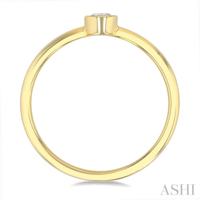 Simplicity is of essence in this charming diamond fashion ring, as it lets the diamond shine through with ultimate brilliance. The ring comes from the trending Petite Collection, and features a circular-shaped mount adorned with a bezel set round cut diamond, which adds a touch of sparkle and sophistication to the piece. A plain gold shank allows the round cut diamond to take center stage. Crafted in 10 karat yellow gold, the Petite diamond fashion ring impresses with its radiant beauty. Total diamond weight is 1/6 ctw.