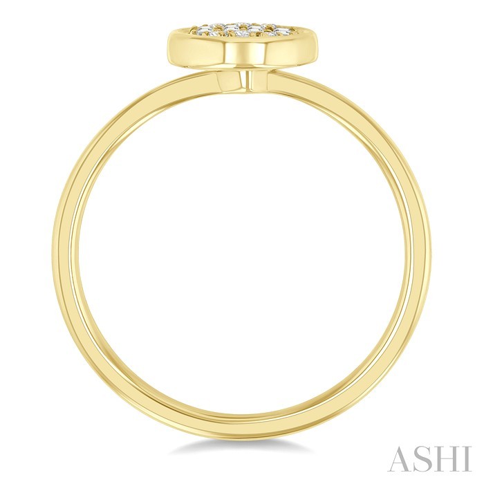A sweet addition to any jewelry collection, this Petite fusion diamond fashion ring offers instant appeal. It features at its heart, a bezel round-shaped center mount that is adorned with a fusion of baguette and round cut diamonds. There are 4 prong set baguette cut diamonds forming a vertical row at the center, while above and below this arrangement, 3 each prong set round cut diamonds add a touch of grace and refinement. A plain gold shank lends a touch of simplicity, allowing the diamonds to steal the spotlight. Molded in 10 karat yellow gold, the Petite fusion diamond fashion ring sparks admiration. Total diamond weight is 1/6 ctw.